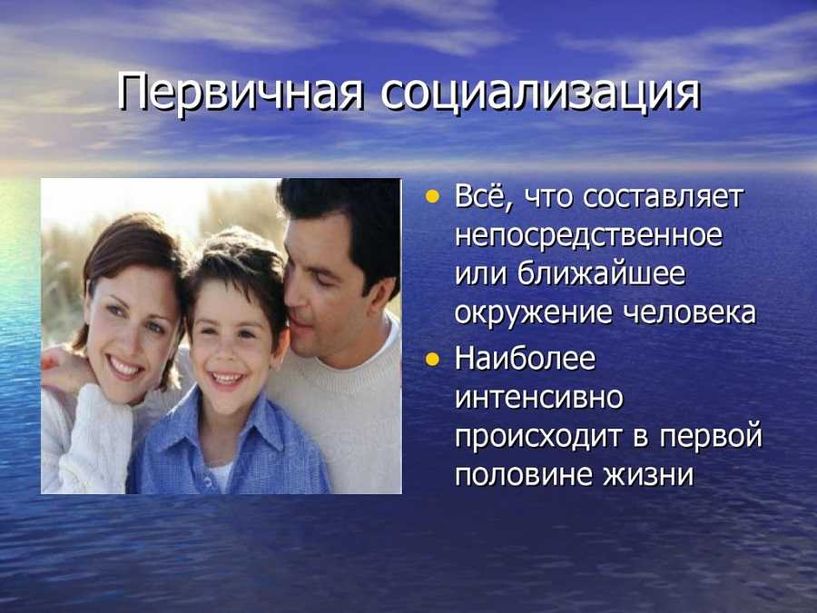 Особенно ощутимое влияние на человека оказывают его родные, ведь они чаще всего контактируют с ним и являются наиболее близкими ему людьми. К тому же, успех социализации сильно зависит от условий формирования личности. Например, дети из благополучных семей могут получить хорошее образование и воспитание, в то время как дети неблагополучных родителей изначально лишены этого, что значительно замедляет процессы их развития и личностного становления.