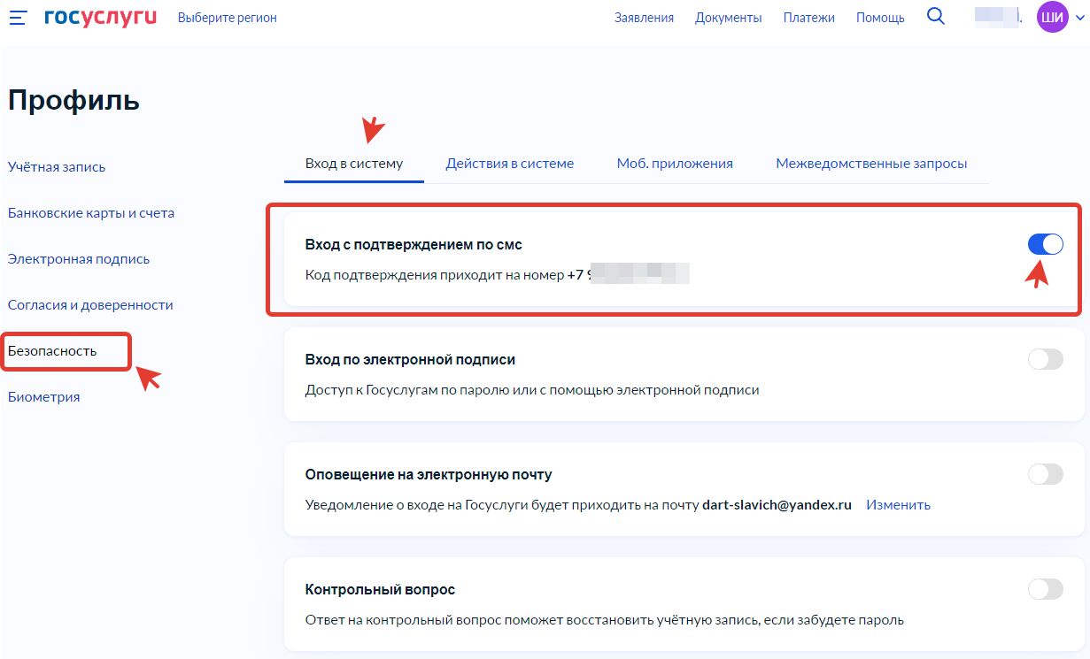 Как настроить двухфакторную авторизацию через СМС в профиле на сайте “Госуслуг”