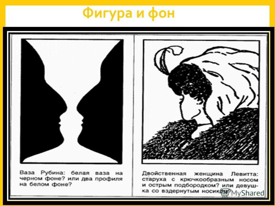 «Ваза Рубина», где объектом являются лица, а ваза – фоном. И наоборот. |