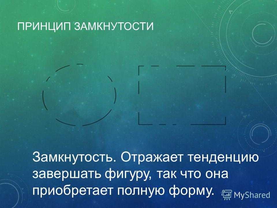 Если в воспринимаемом образе есть какие-либо пробелы, то наш мозг самостоятельно заполнит недостающие части до создания полной формы. |