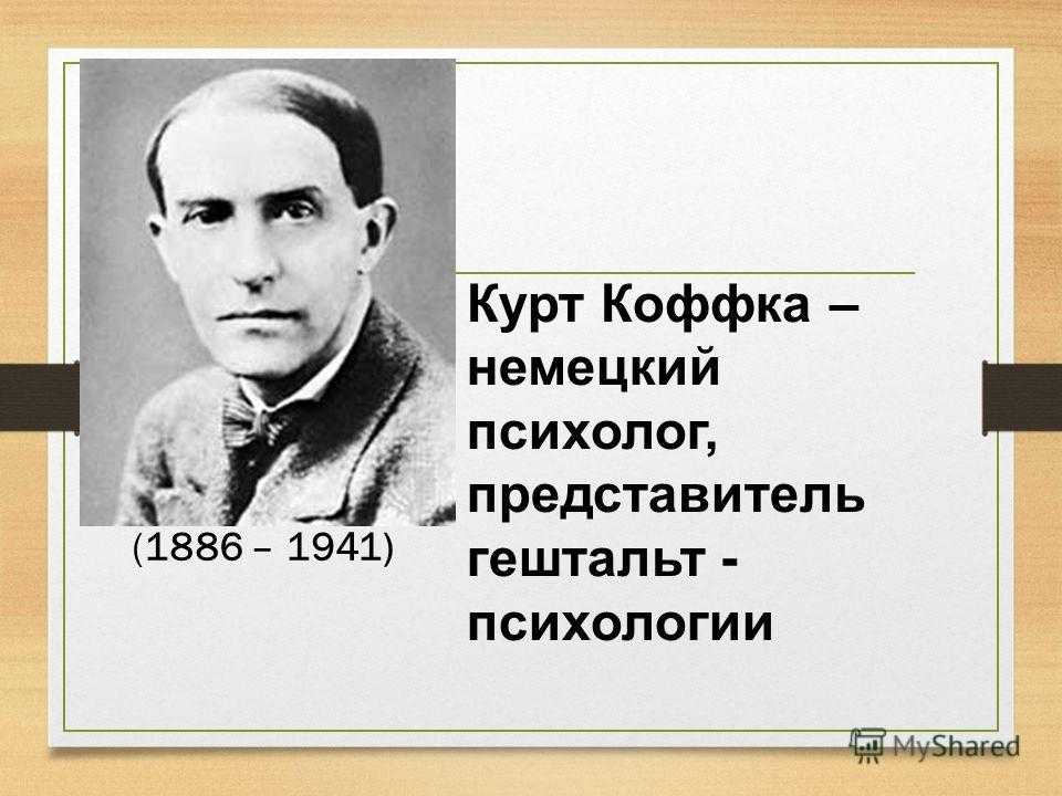 Курт Коффка – немецкий психолог, представитель гештальт — психологии (1886 – 1941)