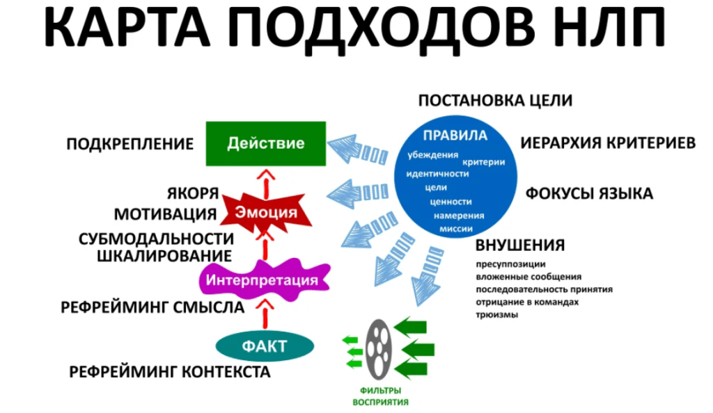 НЛП (Нейролингвистическое программирование) – это область практической психологии, разрабатывающая прикладные техники, моделирующие приёмы и практики знаменитых психотерапевтов и мастеров коммуникаций.