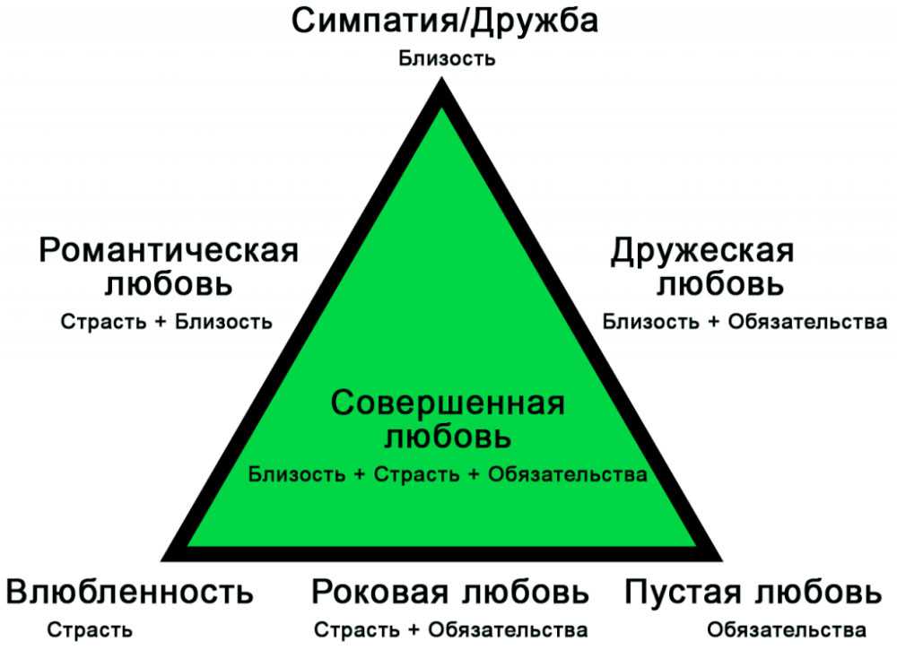 Вопрос любви на протяжении многих лет обсуждался философами и исследовался учеными. Один из американских психологов Роберт Стернберг вывел трехкомпонентную теорию любви, в нее входят: