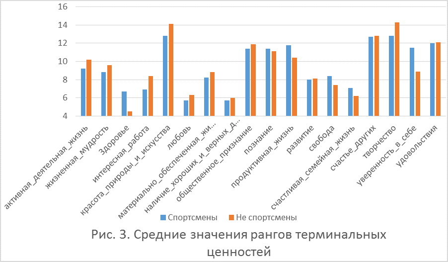 В результате проведения методики М. Рокича выявляется выраженность 36 показателей – ценностных ориентаций двух типов: